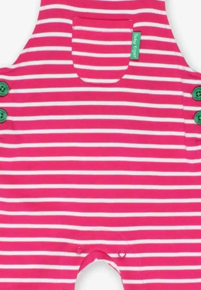 Salopette réglable en coton biologique motif « rayures roses »